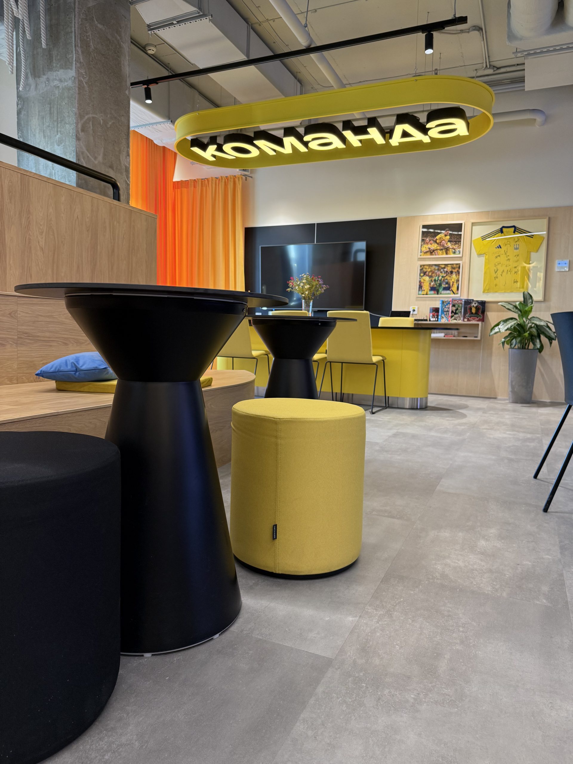 Мебельные решения органично интегрированы в архитектуру офиса, подчеркивая стиль бренда и создавая атмосферу, где рождаются новые идеи.